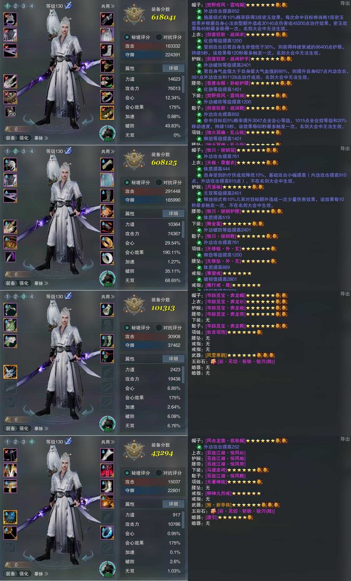 【装备】130级,北傲诀PVP618041,北傲诀PVE608125,装备三101313,装备四43294