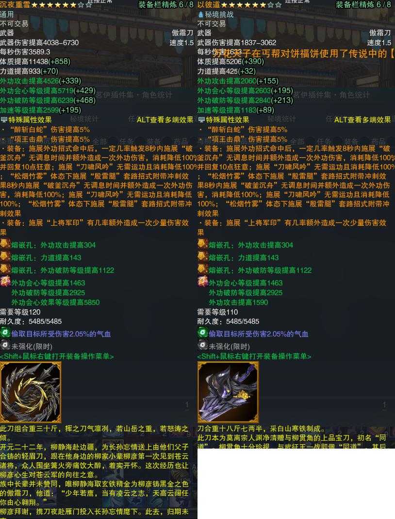 【橙武】(仅本门派)[120小铁*16, 130小铁*197, 110小铁*223, 100小铁*212, 95小铁*219, 90小铁*14, 80小铁*415, 70小铁*257, 120CW沉夜重雪, 110CW以彼道, 100CW沧骨曜月, 95CW新亭侯, 90CW血悲, 门派特效五相斩]