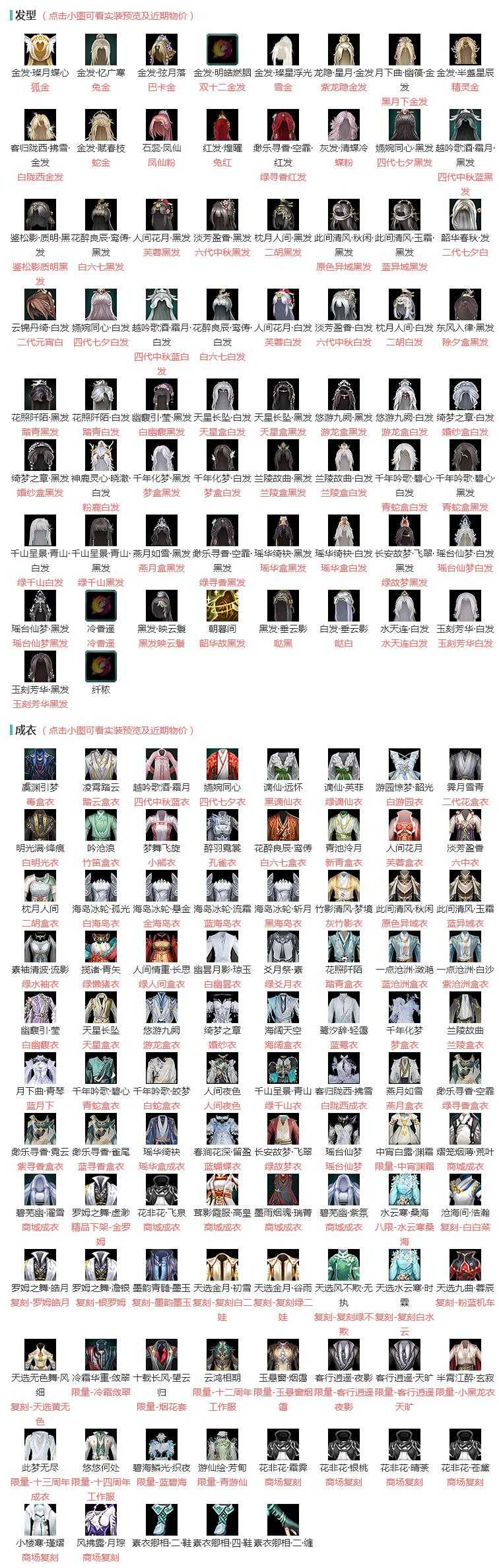 限时限量:[小黑龙衣, 客行逍遥天旷, 青游仙, 烟花套, 水云寒桑海, 蓝碧海, 冷霜敛翠, 十二周年工作服, 玉悬窗烟霭, 十四周年工作服, 十三周年成衣, 客行逍遥夜影, 中宵渊霜]