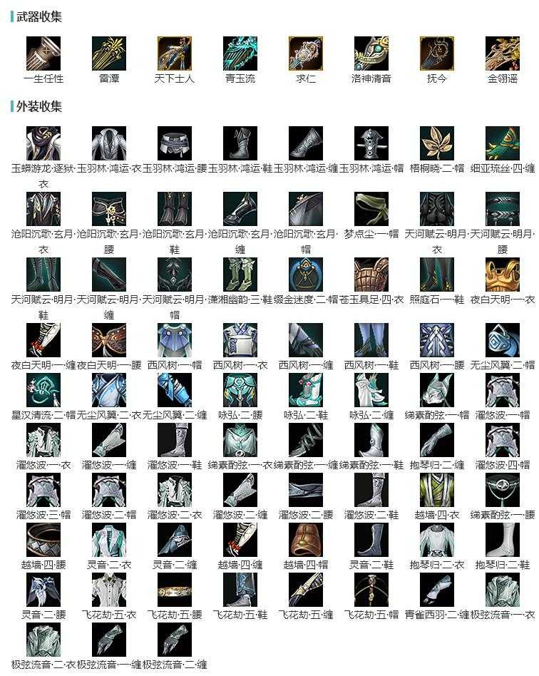 【拓印】8武器, 75成衣收集,80CW拓印洛神清音,95CW拓印青玉流,110CW拓印天下士人,110CW拓印求仁,120CW拓印抚今