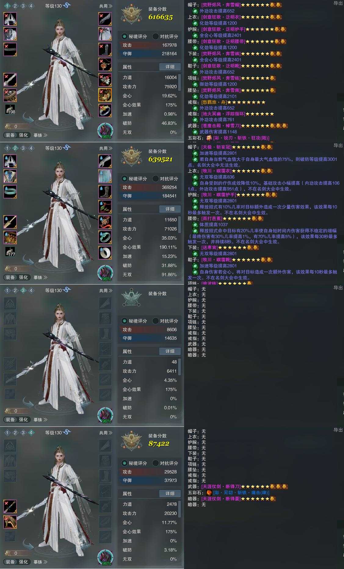 【装备】130级,孤锋诀PVP616635,孤锋诀PVE639521,装备三0,装备四87422
