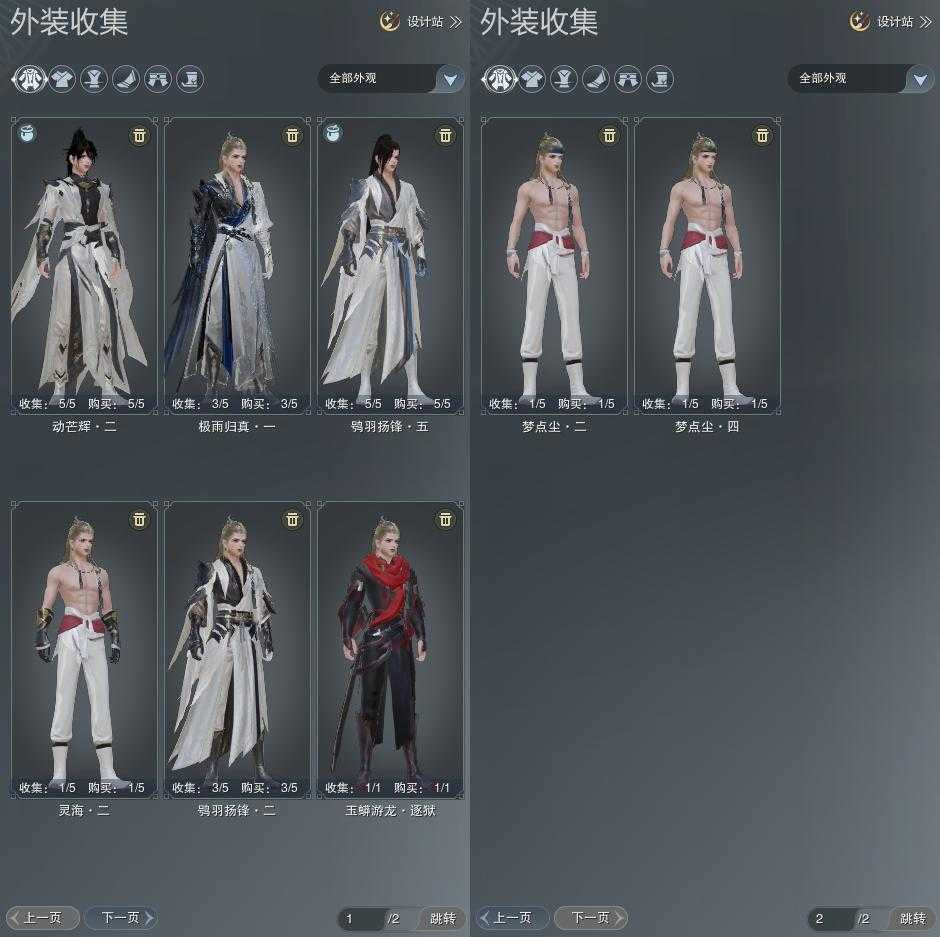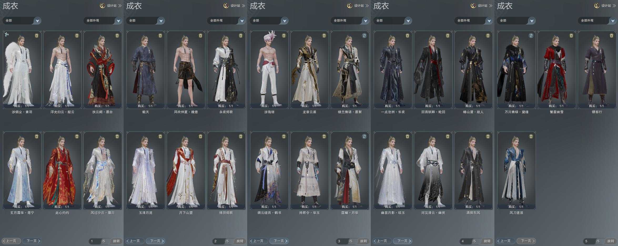 单盒成衣:[白幽昙衣, 黑椿山衣, 红黑妖龙衣, 八七盒衣, 络羽衣, 傀儡盒衣, 黑战国, 蓝浮光, 涉烟尘素羽]
