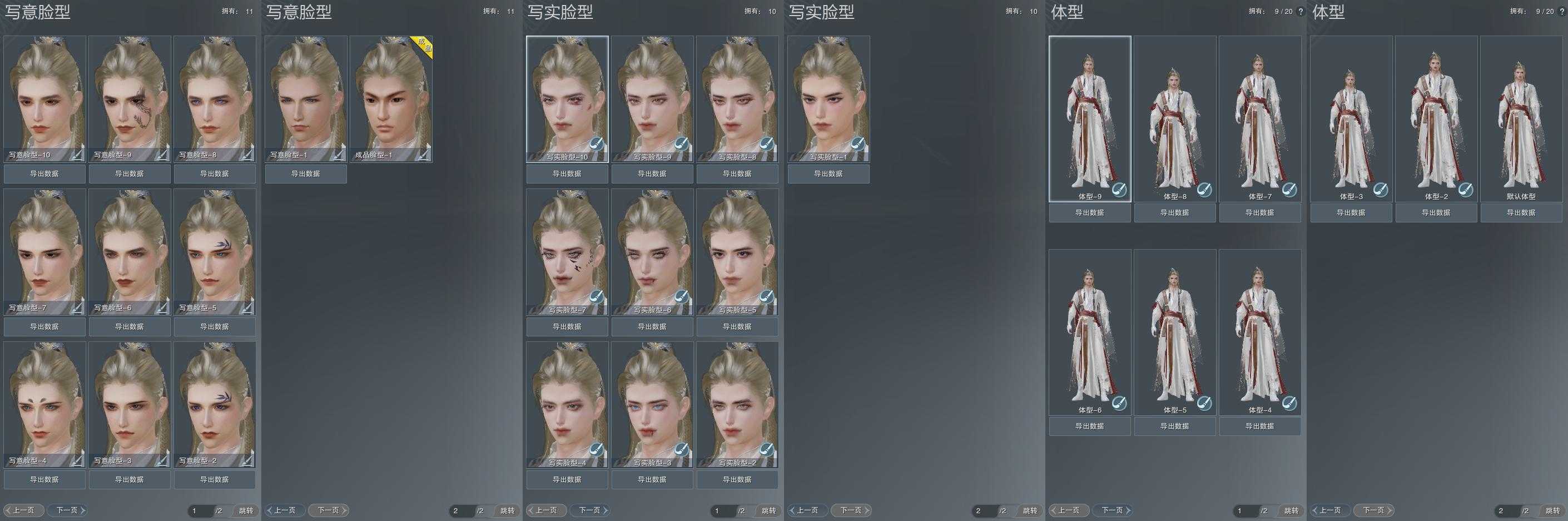 【捏脸】写意脸型11个,写实脸型10个,体型9个