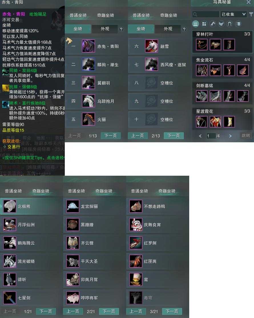 【坐骑】7个[西风瘦逐狱, 乌蹄抱月, 赤兔青阳]