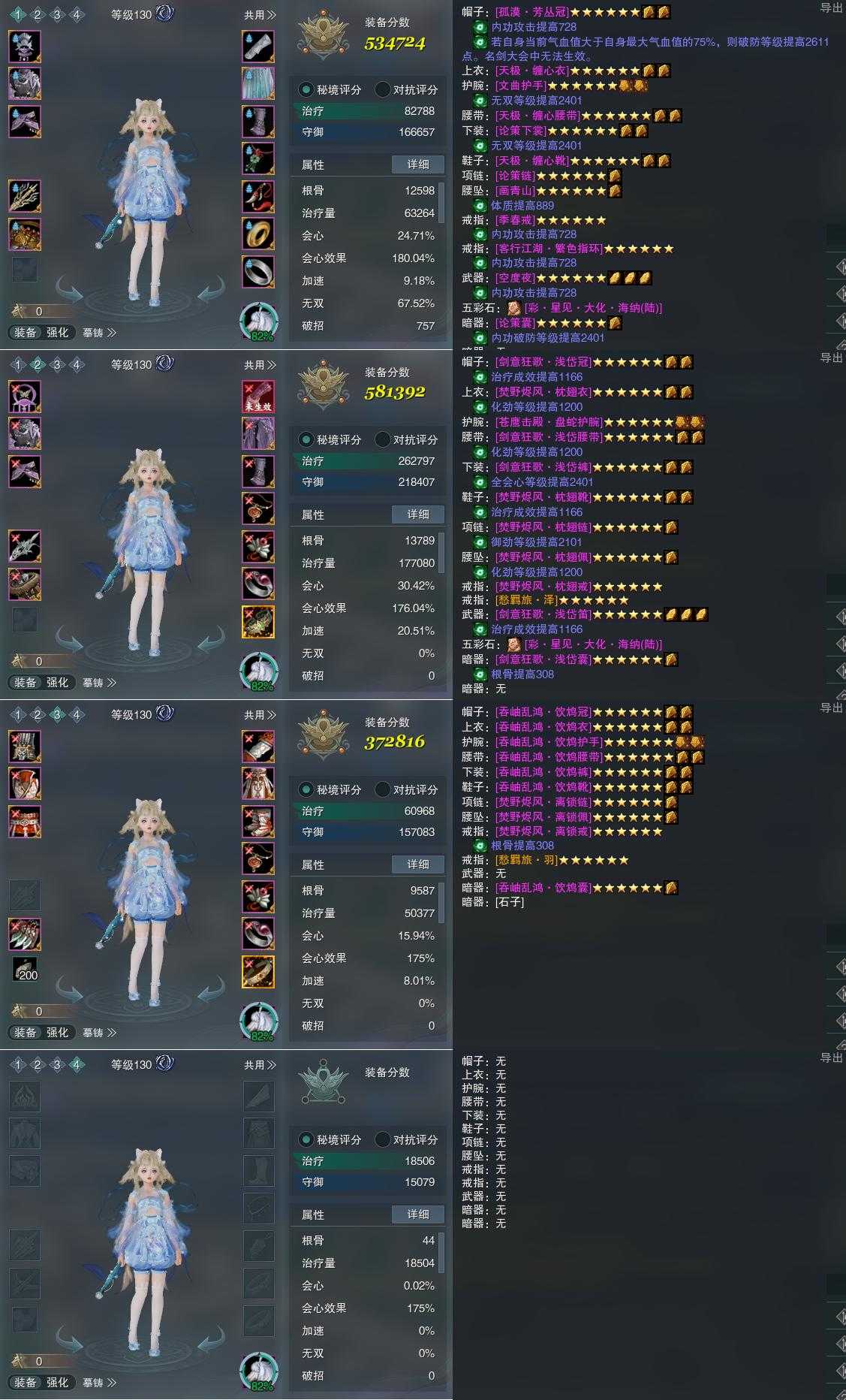【装备】130级,毒经PVE534724,补天诀PVE581392,毒经装备三372816,装备四0