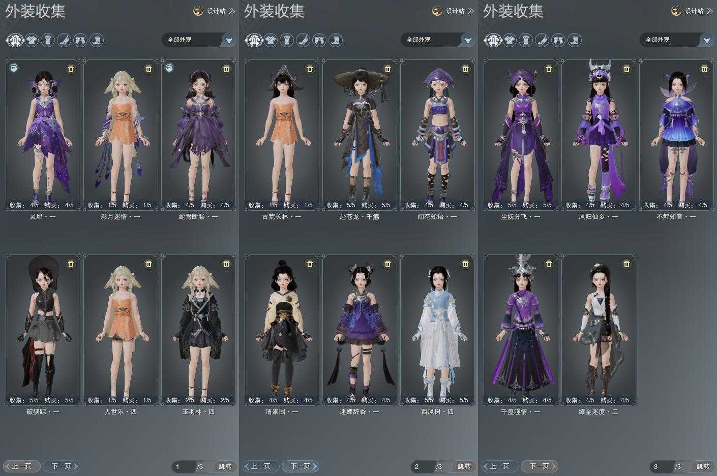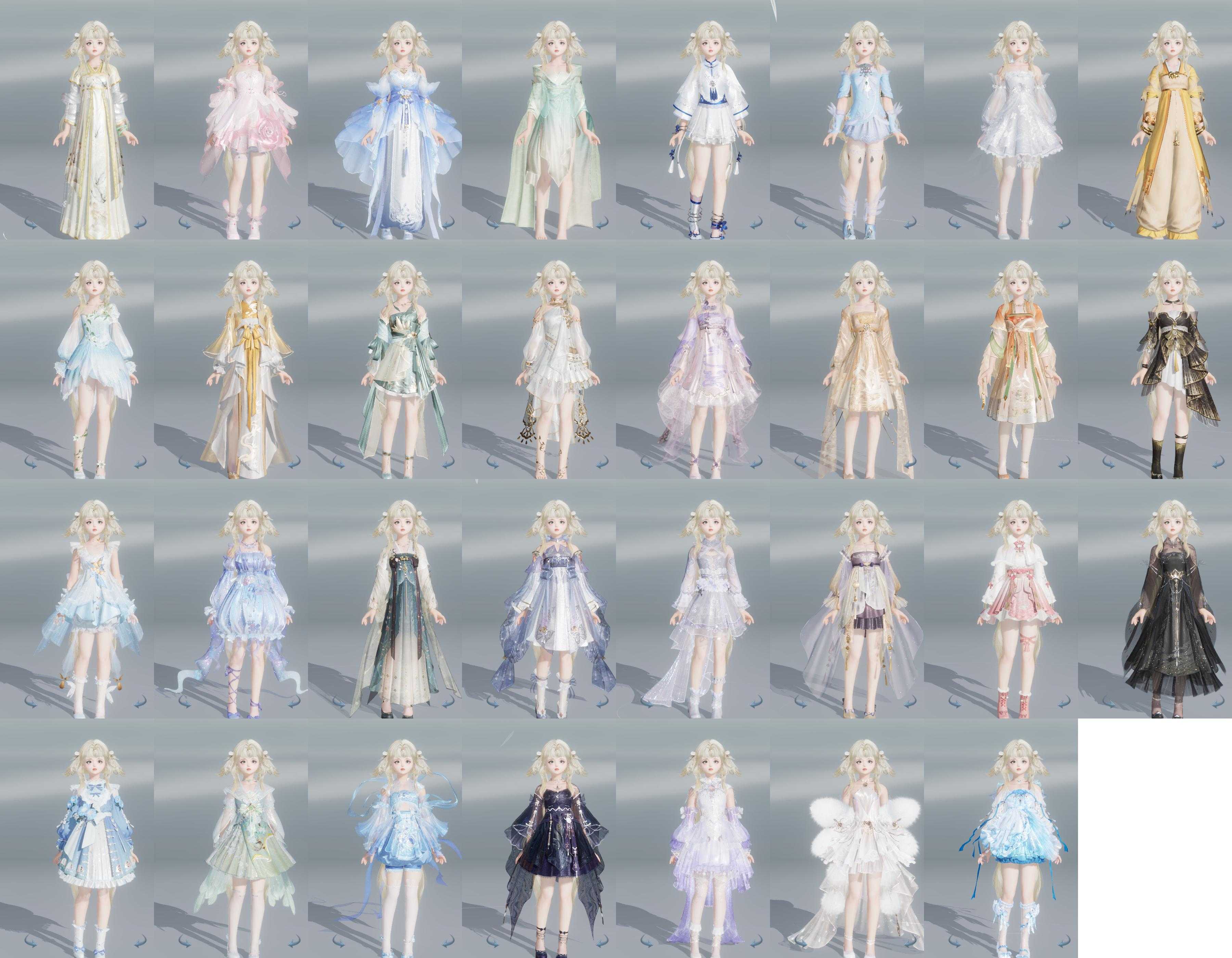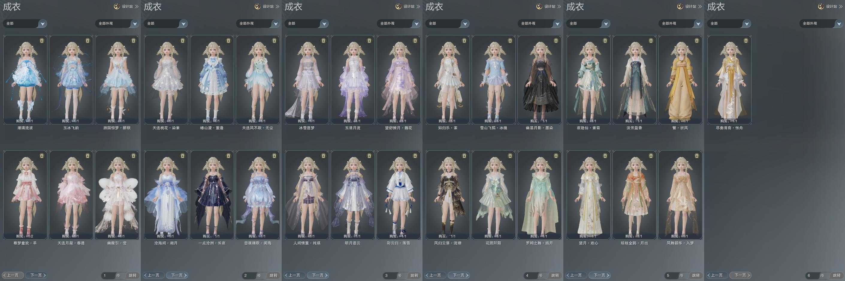 单盒成衣:[白如归衣, 蓝游园衣, 花滑盒衣, 紫人间盒衣, 踏青盒衣, 八七盒衣]