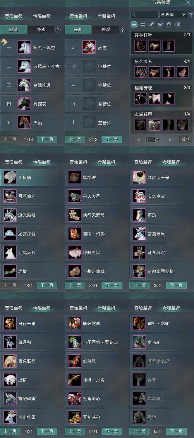 【坐骑】6个[乌蹄抱月, 挥戈飒沓, 浪风燕今古]