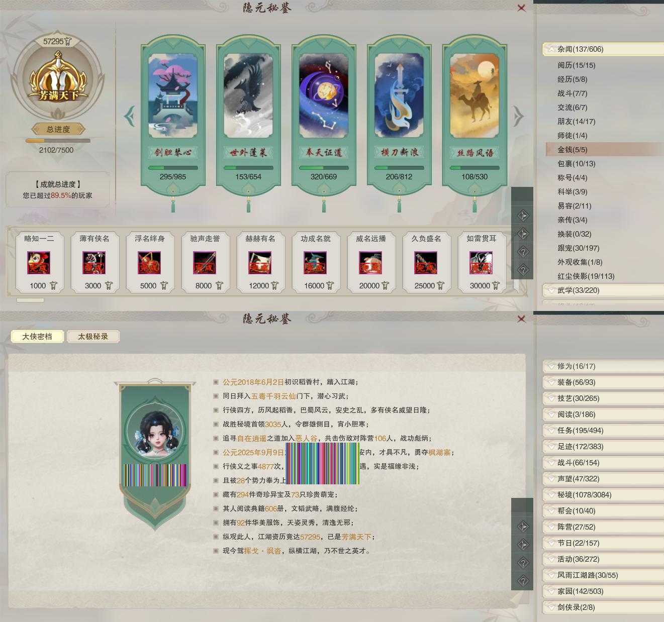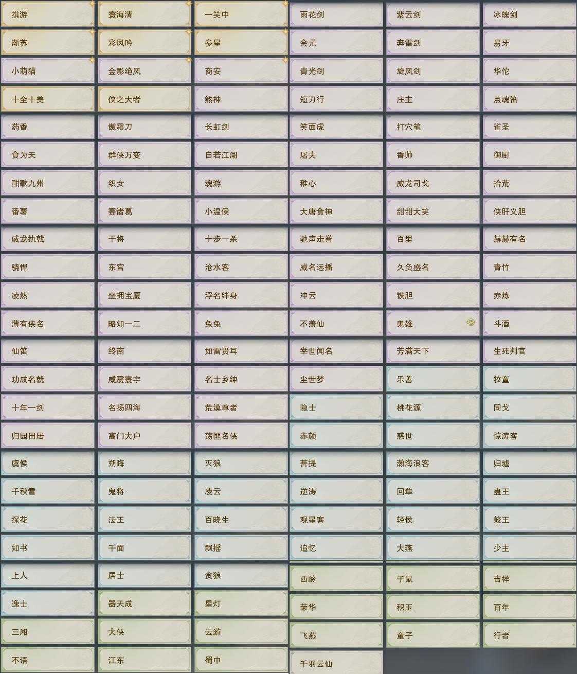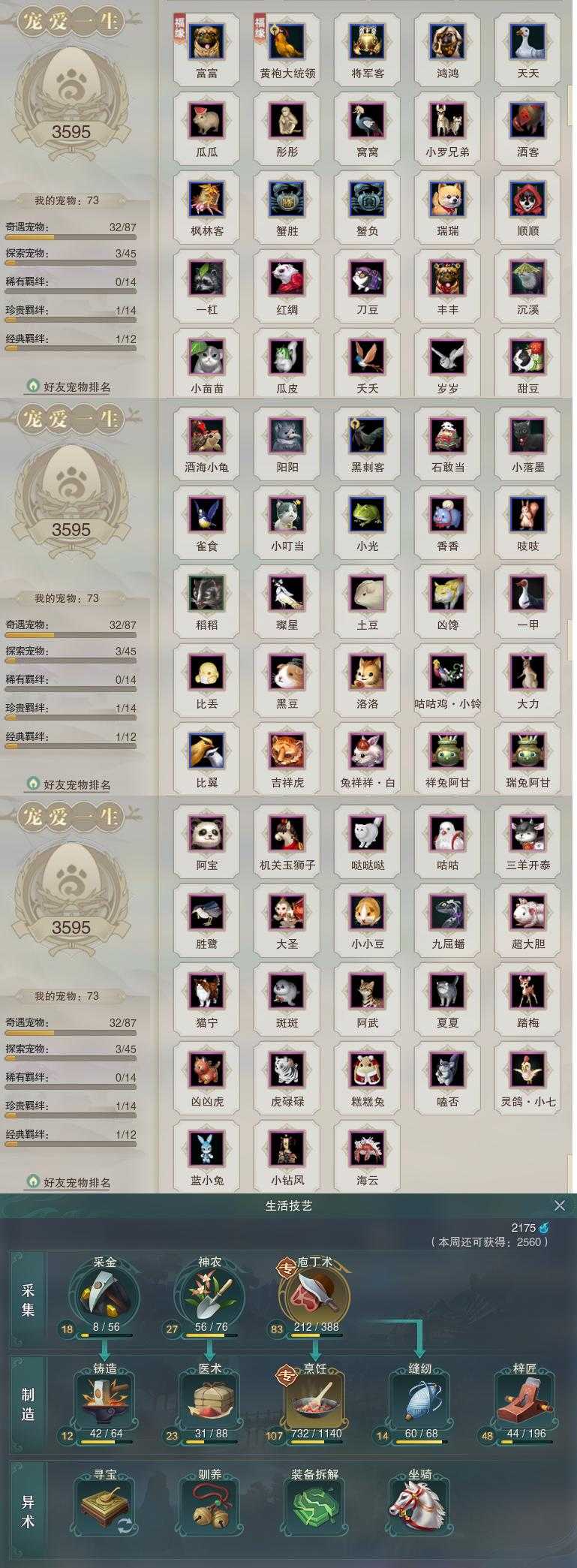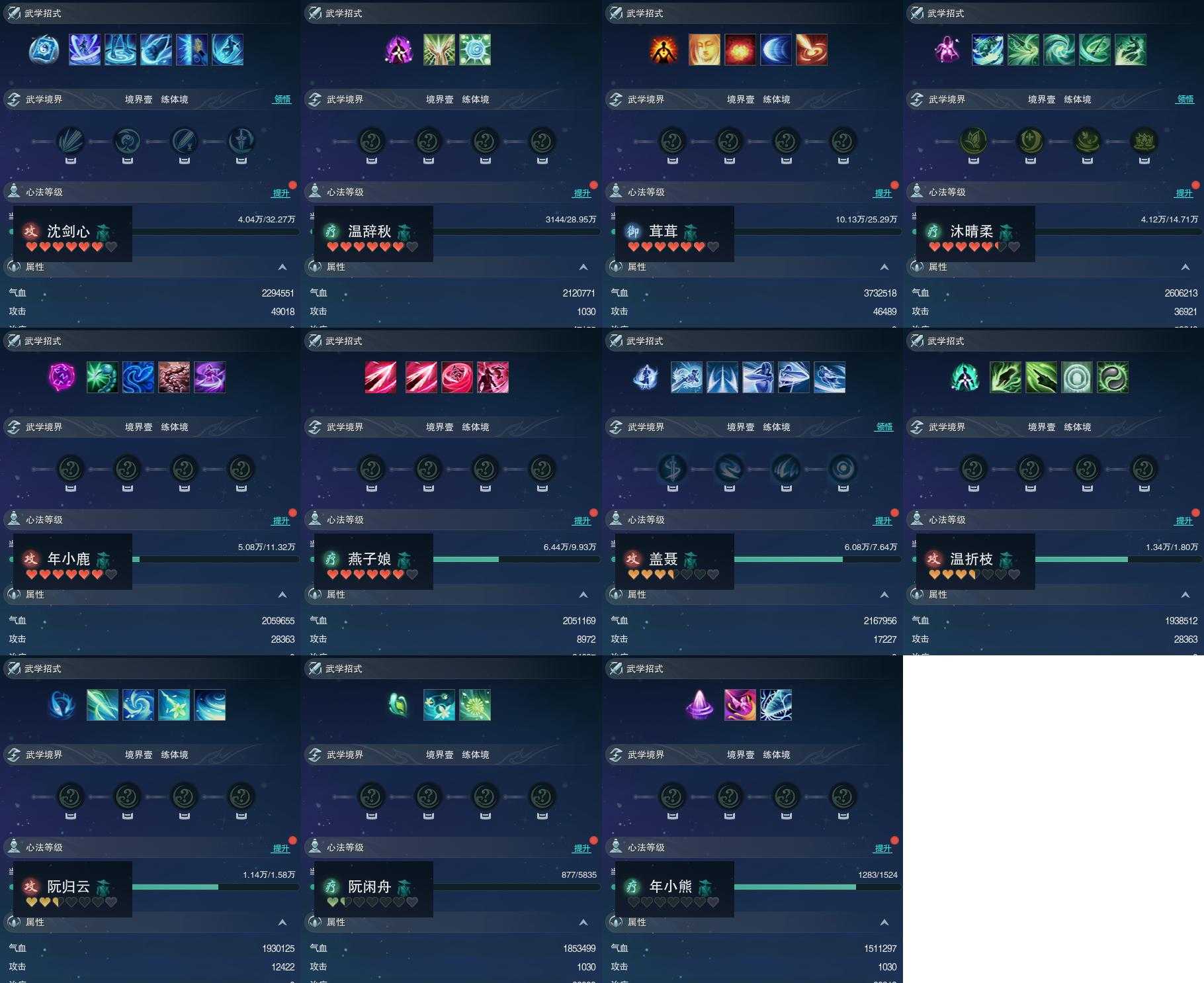 【同伴】沈剑心77级境界壹,温辞秋75级境界壹,茸茸志74级境界壹,沐晴柔70级境界壹,年小鹿68级境界壹,燕子娘67级境界壹,盖聂志65级境界壹,温折枝54级境界壹,阮归云53级境界壹,阮闲舟44级境界壹,年小熊3级境界壹