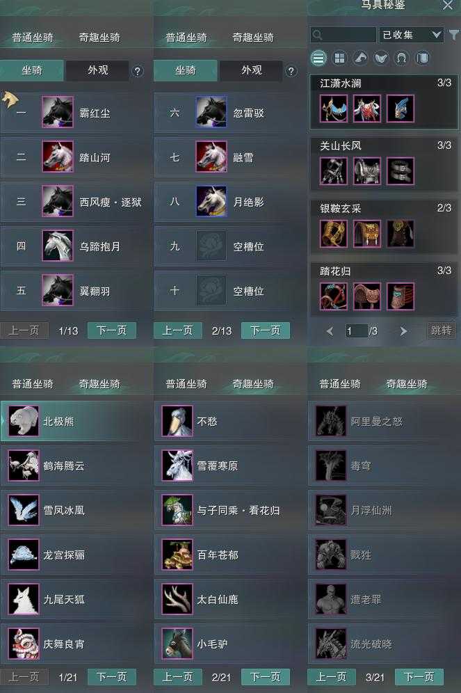 【坐骑】8个[西风瘦逐狱, 乌蹄抱月, 霸红尘]