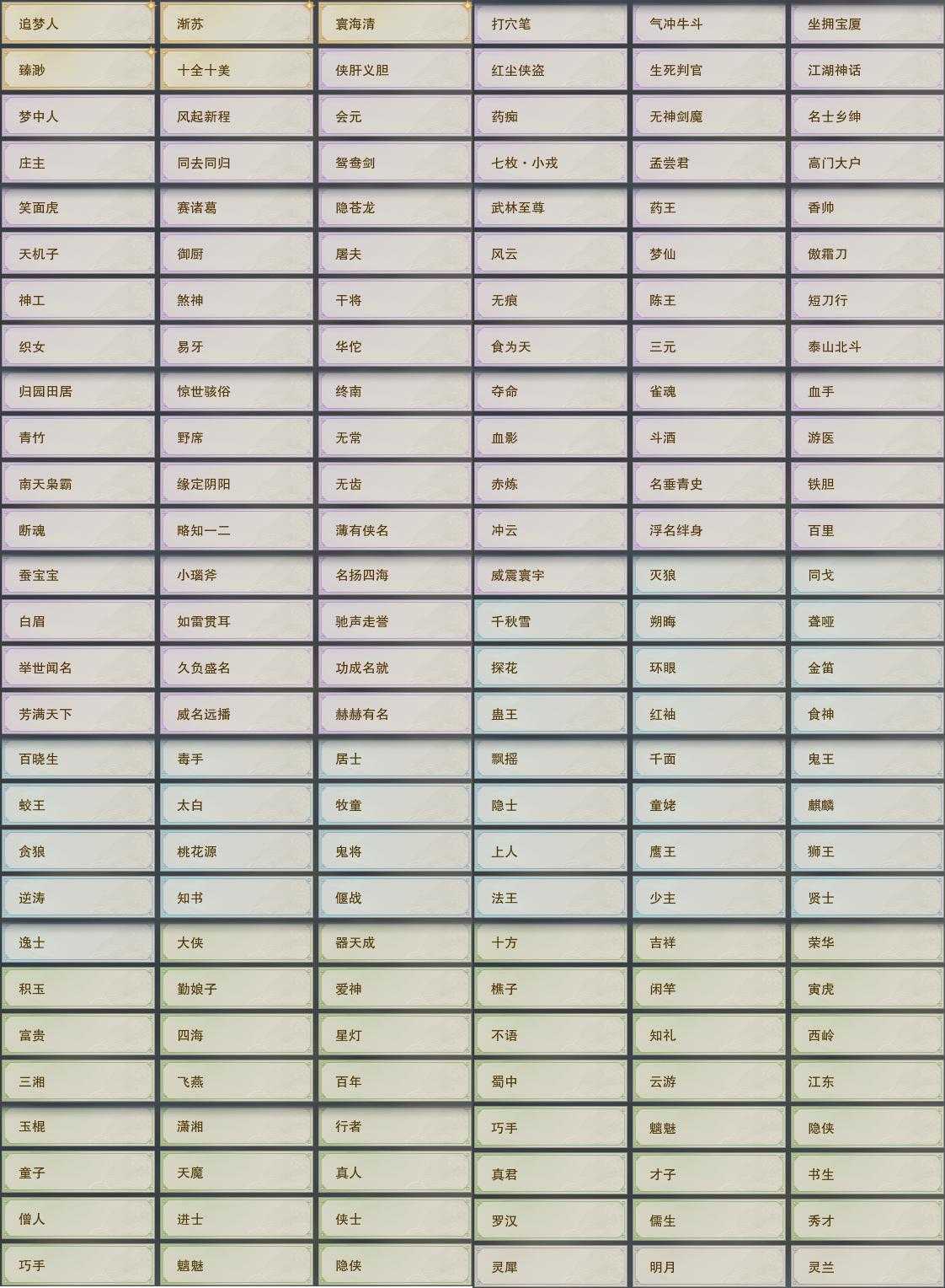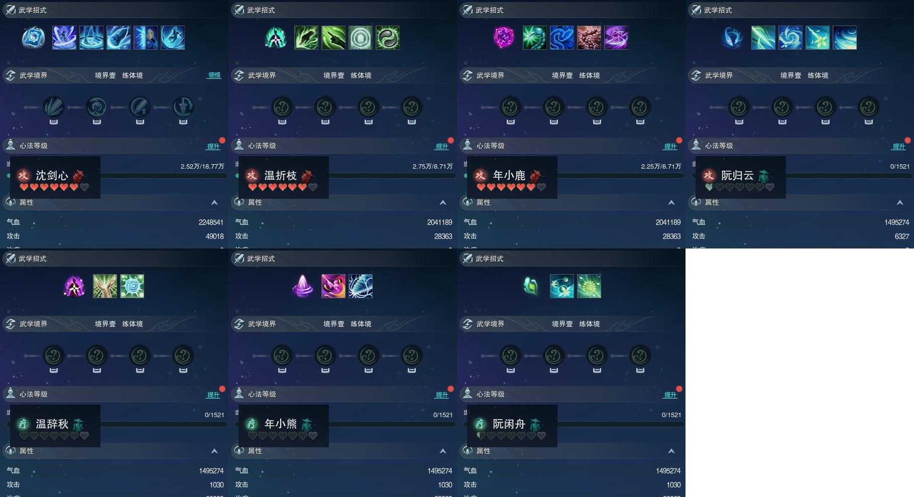 【同伴】沈剑心73级境界壹,温折枝66级境界壹,年小鹿66级境界壹,阮归云1级境界壹,温辞秋1级境界壹,年小熊1级境界壹,阮闲舟1级境界壹