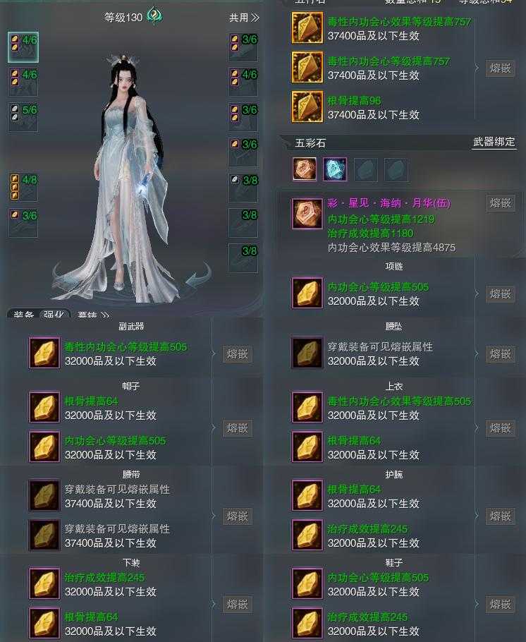【装备】130级,无方PVE534090,灵素PVE496492,装备三0,装备四95384