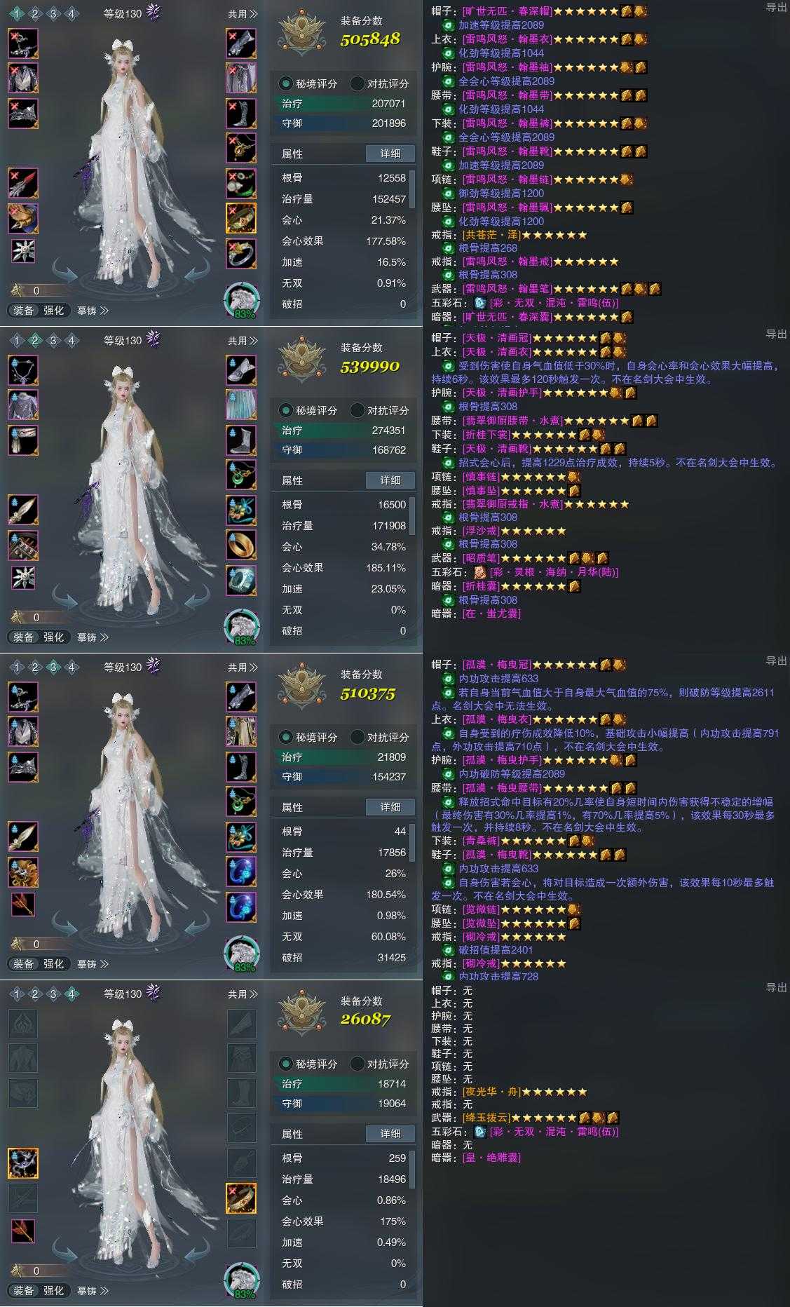 【装备】130级,离经易道PVE505848,离经易道PVE539990,花间游PVE510375,装备四26087