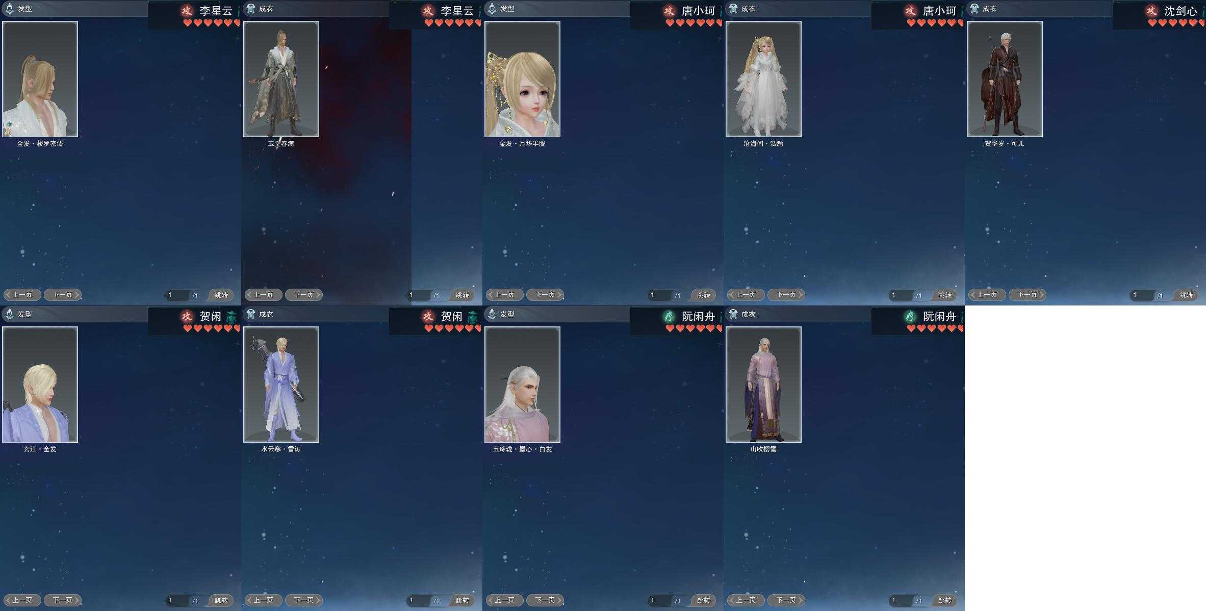 【发型】金发10个[狐金, 资历金, 鸡金, 蝶金, 凤金, 雪金, 海金, 玄江金发, 白龙隐金发, 白陇西金发], 红发4个[蝶粉, 小资历红, 十五红, 紫寻香红发], 黑发40个, 白发19个, 盒子发型[丝路黑, 雪月白发, 山吹樱雪黑发, 丝路白, 山吹樱雪白发, 流萤黑发, 蓝曲塘黑, 墨心白发, 净尘白发, 红曲塘白, 山海黑发, 红雨山前黑发, 山海白发, 幽涧愀兮白发, 白玄玉黑发, 白雪人白发, 灵龙盒黑发, 蓝沧洲盒黑发, 灵龙白发, 婚纱盒黑发, 白鹭黑发, 青蛇盒黑发, 红上火黑发, 青蛇盒白发, 蓝千山黑发, 燕月盒黑发, 紫寻香黑发, 云掠霜峰白发, 瑶华盒黑发, 燕月盒白发, 瑶华盒白发, 仙剑黑发, 潮涌盒黑发, 瓷盒黑发, 潮涌盒白发, 瓷盒白发, 紫浮光黑发], 总页数8