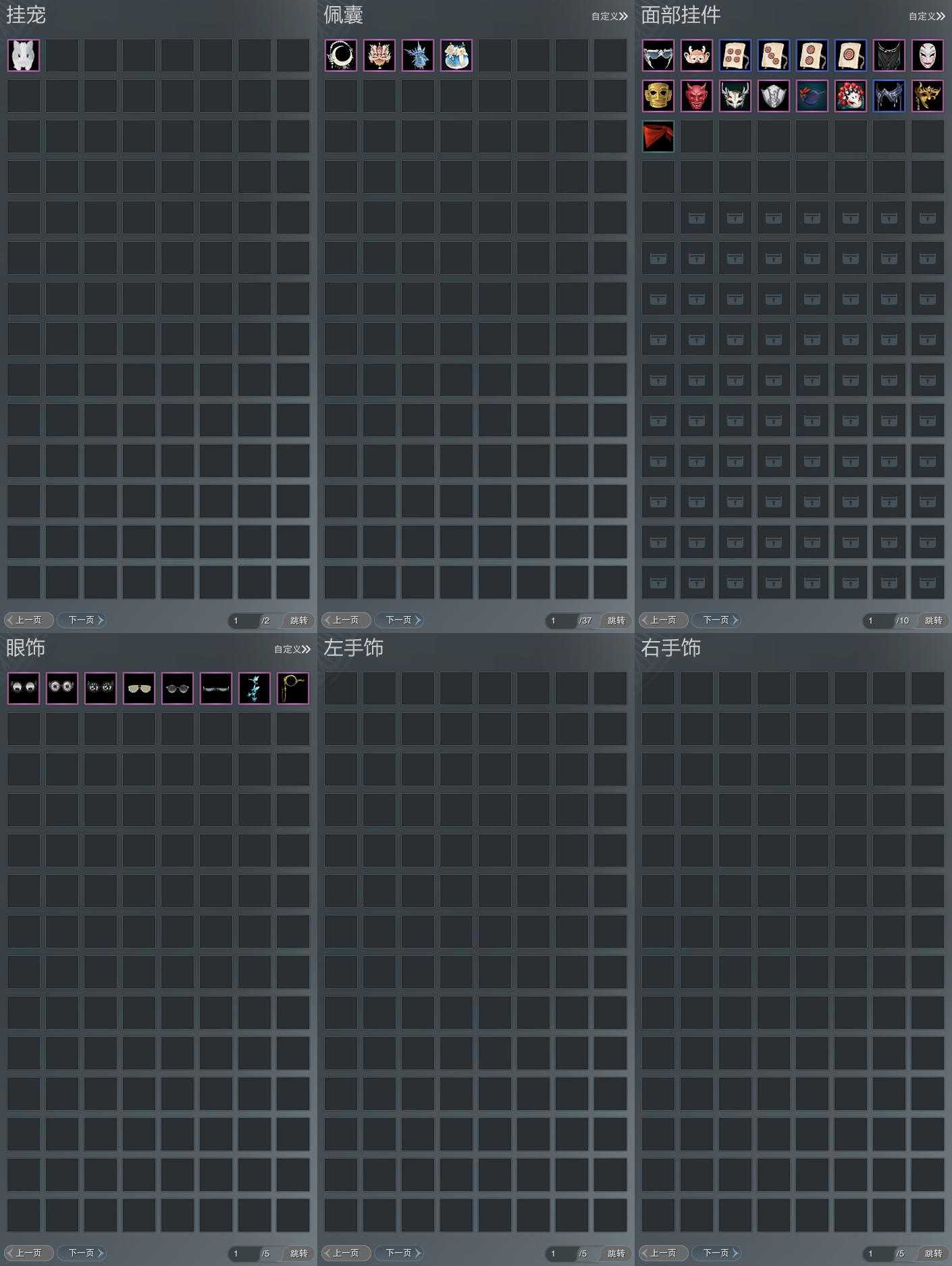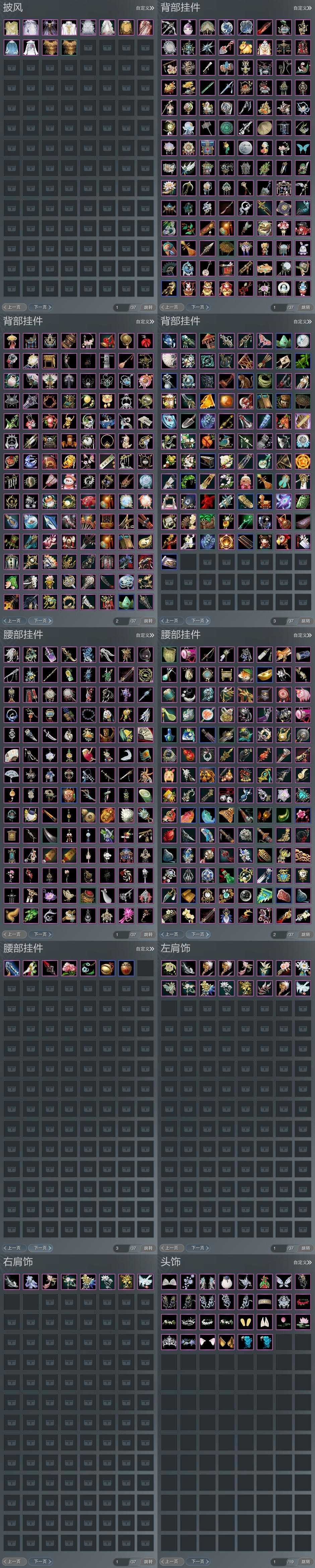 【肩饰】16左,8右,[小叶灵·左, 双鱼曳波·无量·左, 云岚叠岫·左, 碧海云仙·左, 浮屠明音·左, 剑歌惊月·左, 华焰披锦·左, 鹤影天青·左][云岚叠岫·右, 碧海云仙·右, 浮屠明音·右, 剑歌惊月·右, 鹤影天青·右]