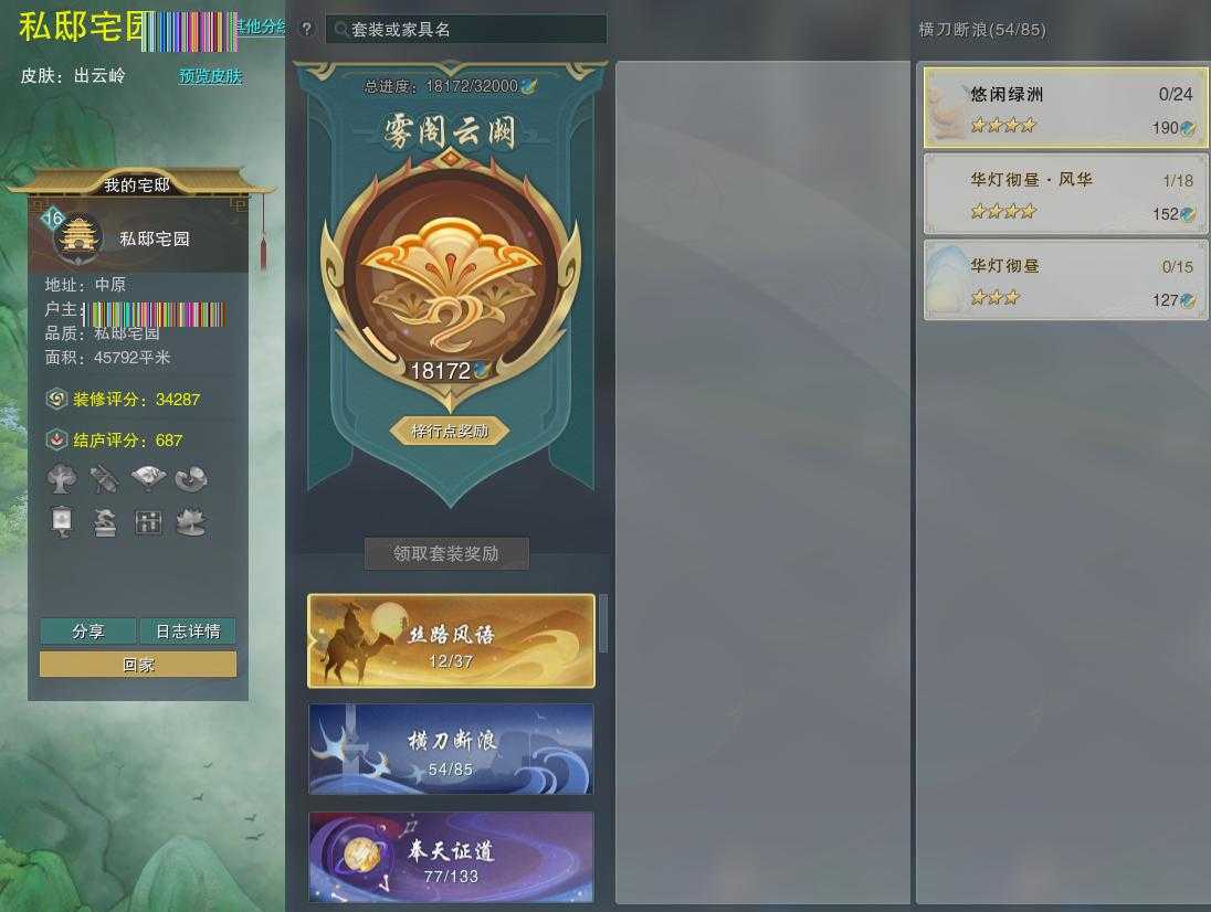 【家园】房屋等级16,私邸宅园,梓行点18172