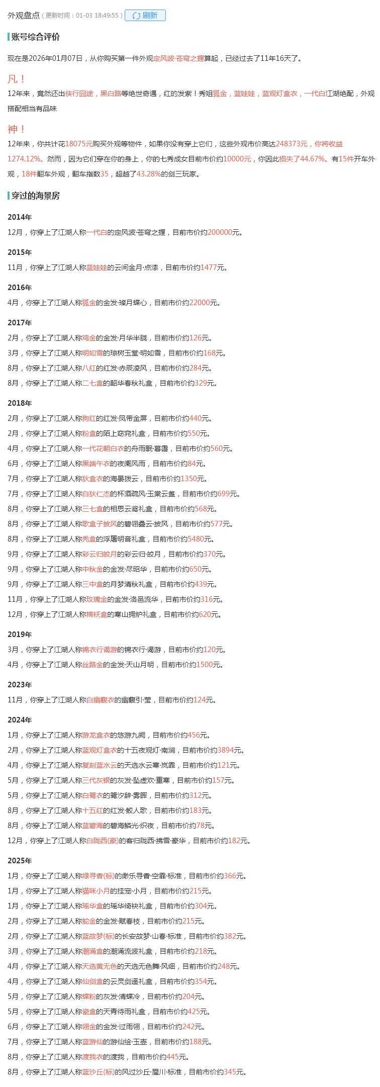 【备注】不绑定物品、积分、通宝及金币全清(积分、通宝、战阶、帮贡、侠义、威望、名剑币、背包等随时变动不算跑单理由)