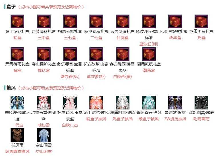 【披风】10个,[7W资历披风, 一代白, 粉盒子披风, 秃盒子披风, 歌盒子披风, 明如雪, 白狄仁杰, 空山闲雪]