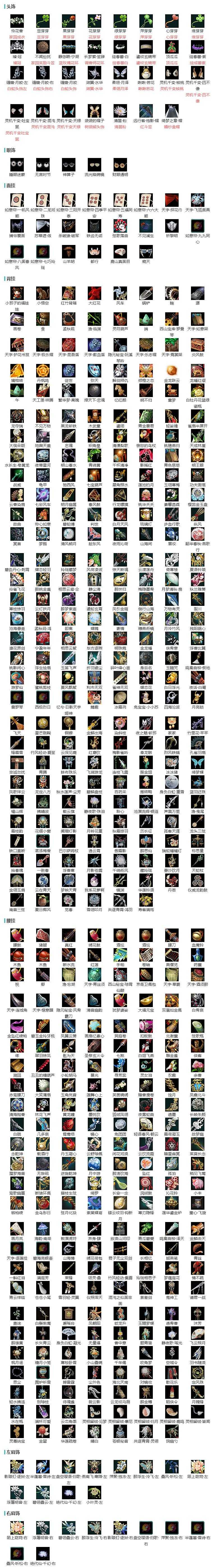 【肩饰】12左,10右,[浮屠明音·左, 碧翎叠云·左, 陌上窈窕·左, 绝代仙·千幻·左, 小叶灵·左][浮屠明音·右, 碧翎叠云·右, 陌上窈窕·右, 绝代仙·千幻·右]