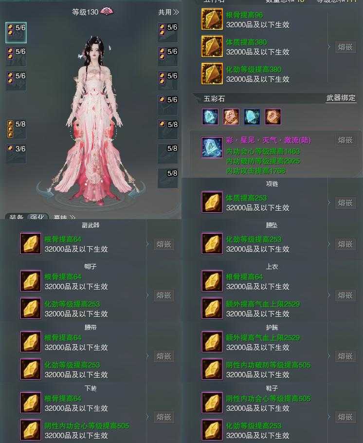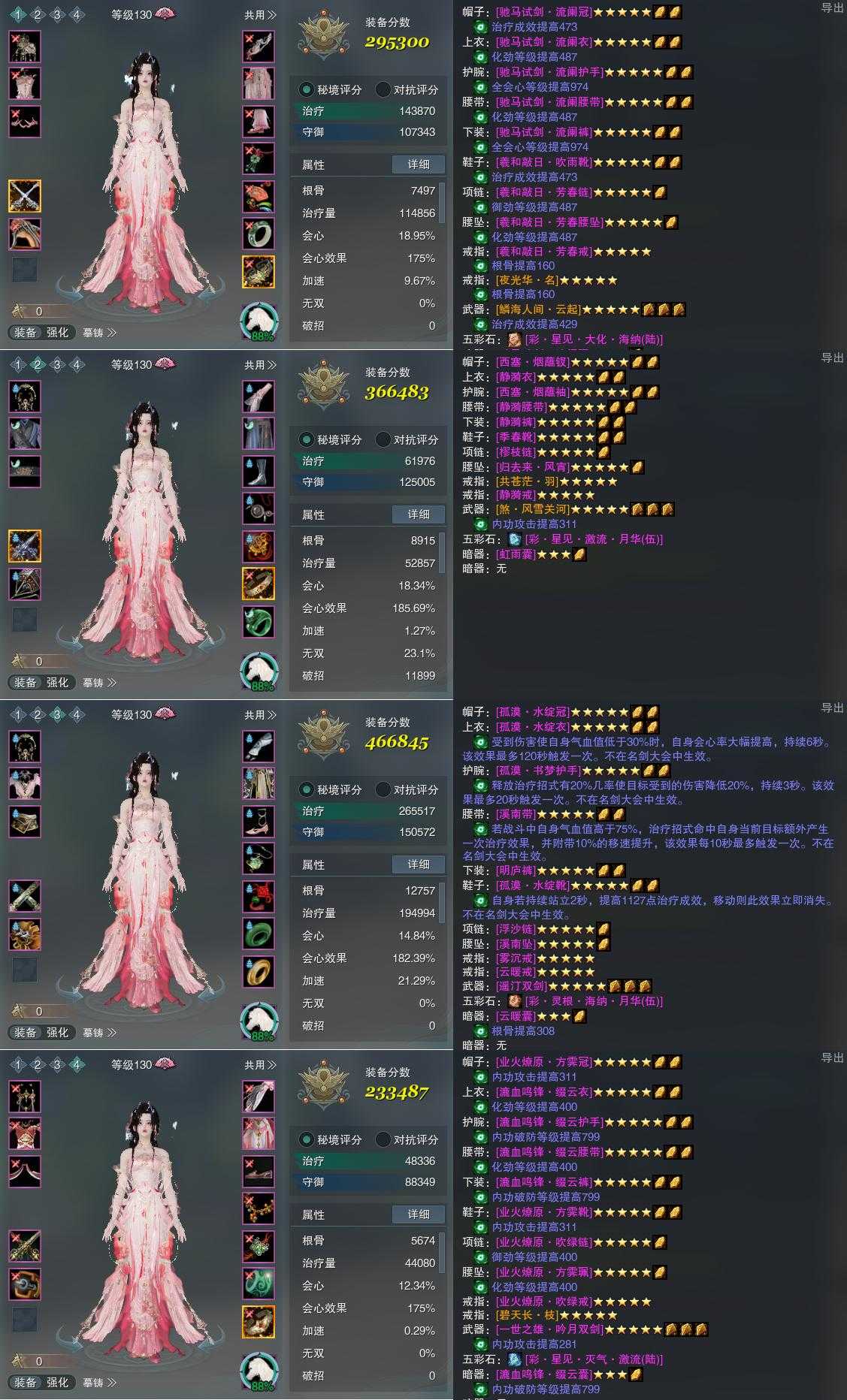 【装备】130级,装备一295300,冰心诀PVP366483,云裳心经装备三466845,装备四233487