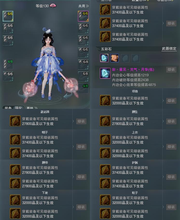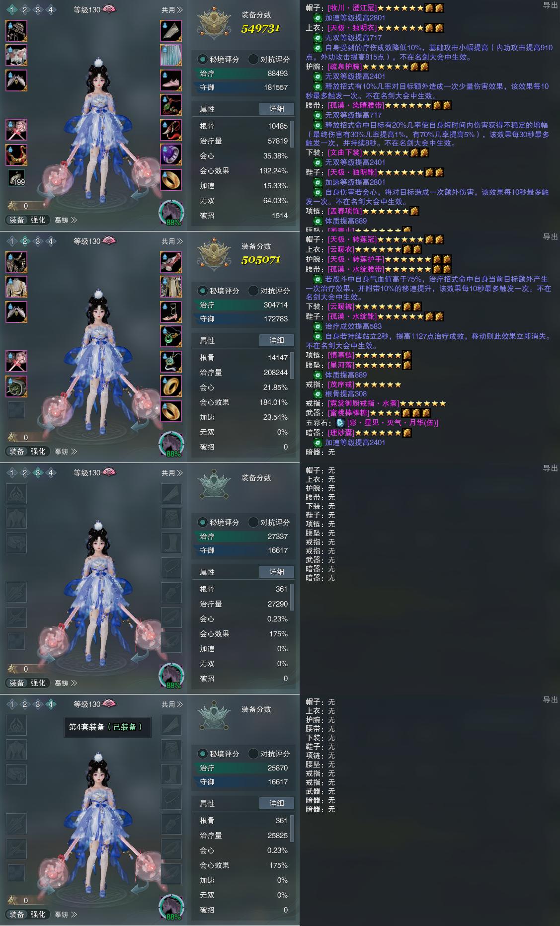 【装备】130级,冰心诀PVE549731,云裳心经PVE505071,装备三0,装备四0