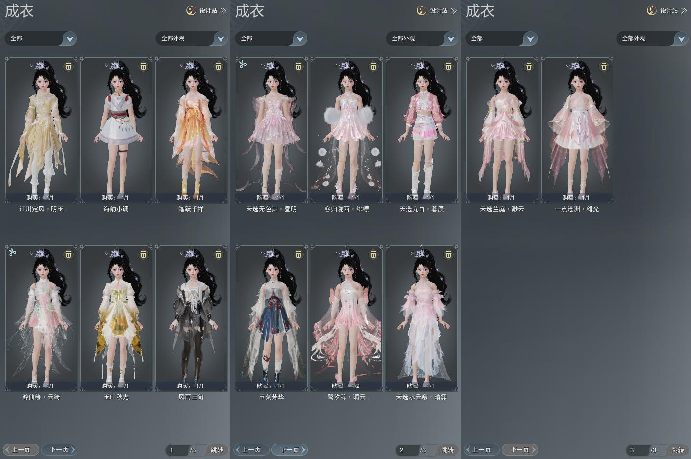 【成衣】总计17件,单盒成衣4件,限时限量7件,商城6件,下架0件
