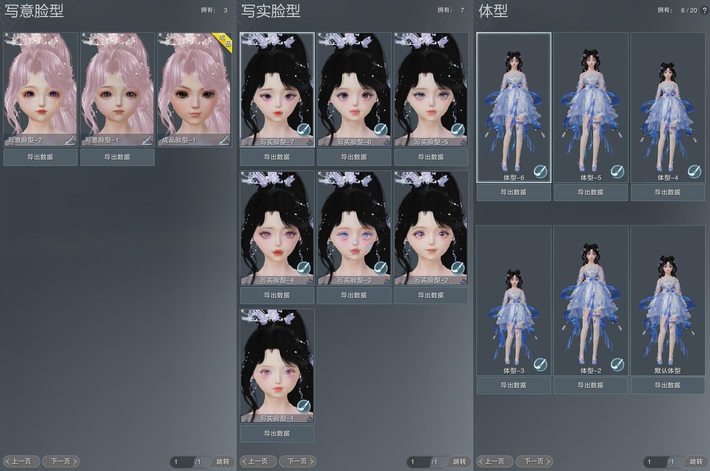 【捏脸】写意脸型3个,写实脸型7个,体型6个