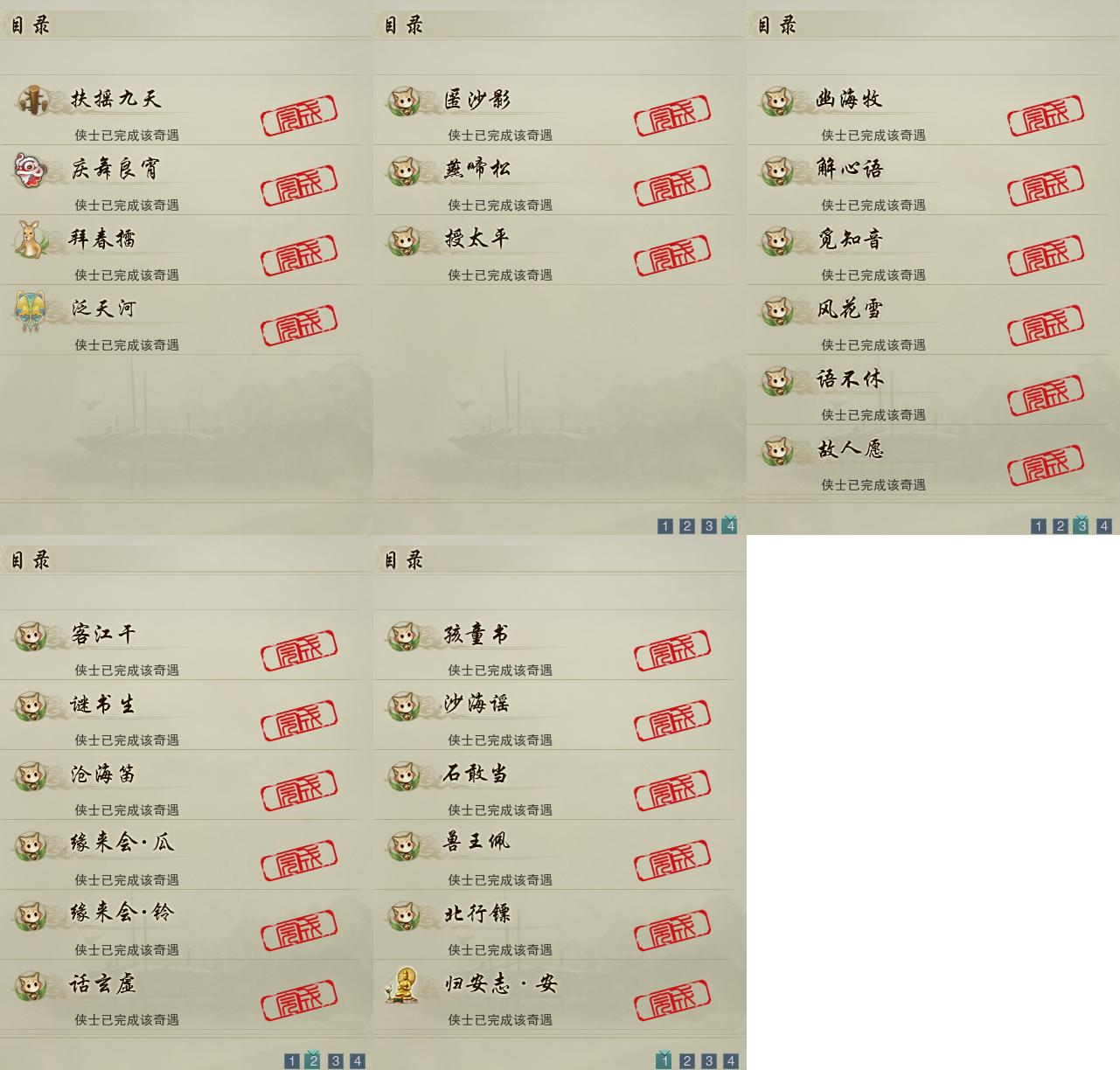 【奇遇】4个[扶摇九天, 庆舞良宵, 泛天河, 拜春擂]