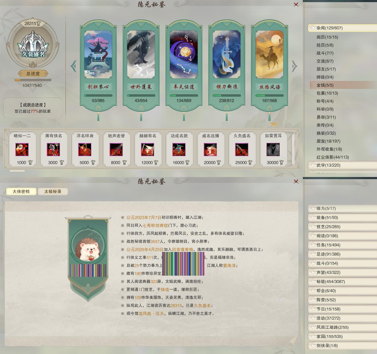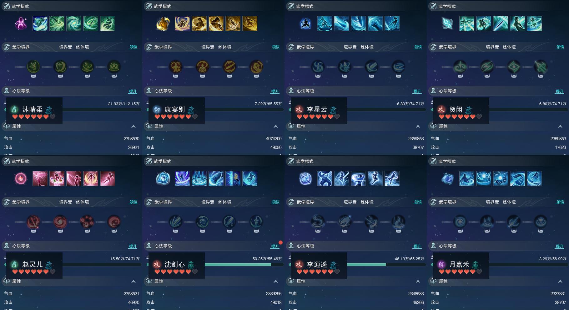 【同伴】沐晴柔85级境界壹,康宴别83级境界壹,李星云82级境界壹,贺闲意82级境界壹,赵灵儿82级境界壹,沈剑心81级境界壹,李逍遥81级境界壹,月嘉禾80级境界壹